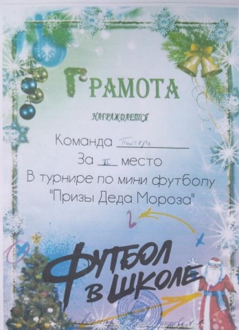 2024 Грамота за 3 место в турнире по мини футболу "Призы Деда Мороза" |